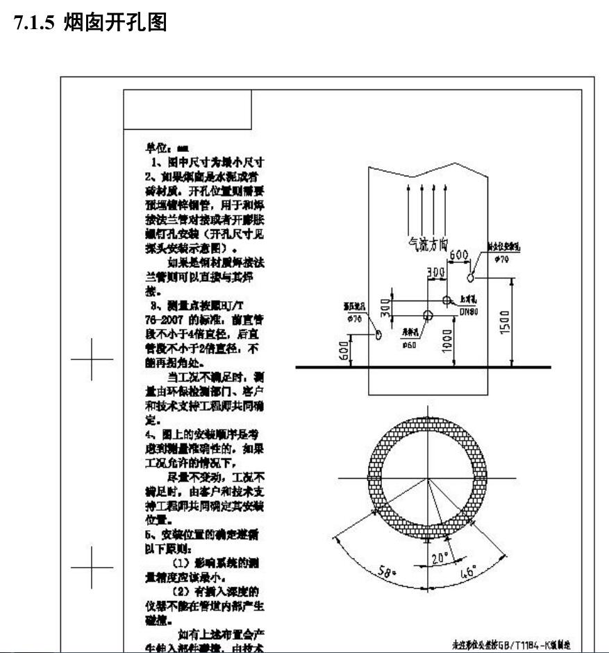 安裝煙氣在線監(jiān)測設備的煙囪上,按照國家75/76標準的話,一般情況下要開4個或者5個孔;都有氣體污染物孔、溫壓流孔、粉塵(顆粒物)孔、環(huán)保局比對口;如果測濕度的話,那就加一個濕度孔。在開好孔之后,一定要根據(jù)煙囪的材質,安裝好相應的法蘭。